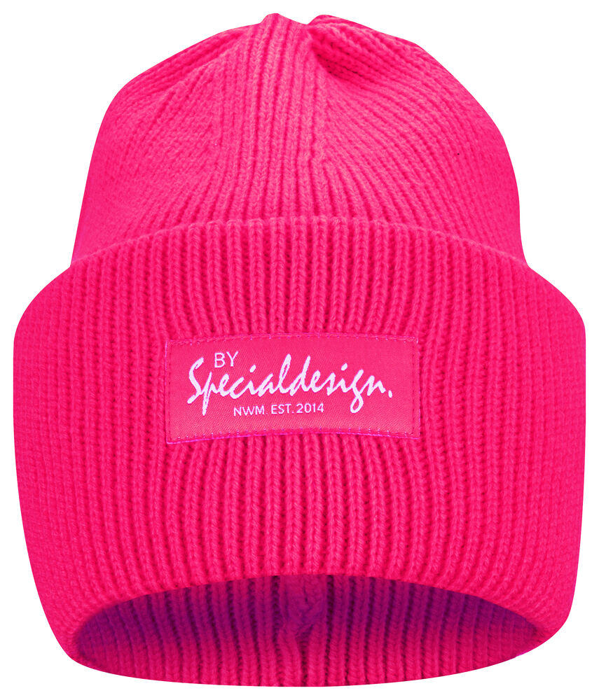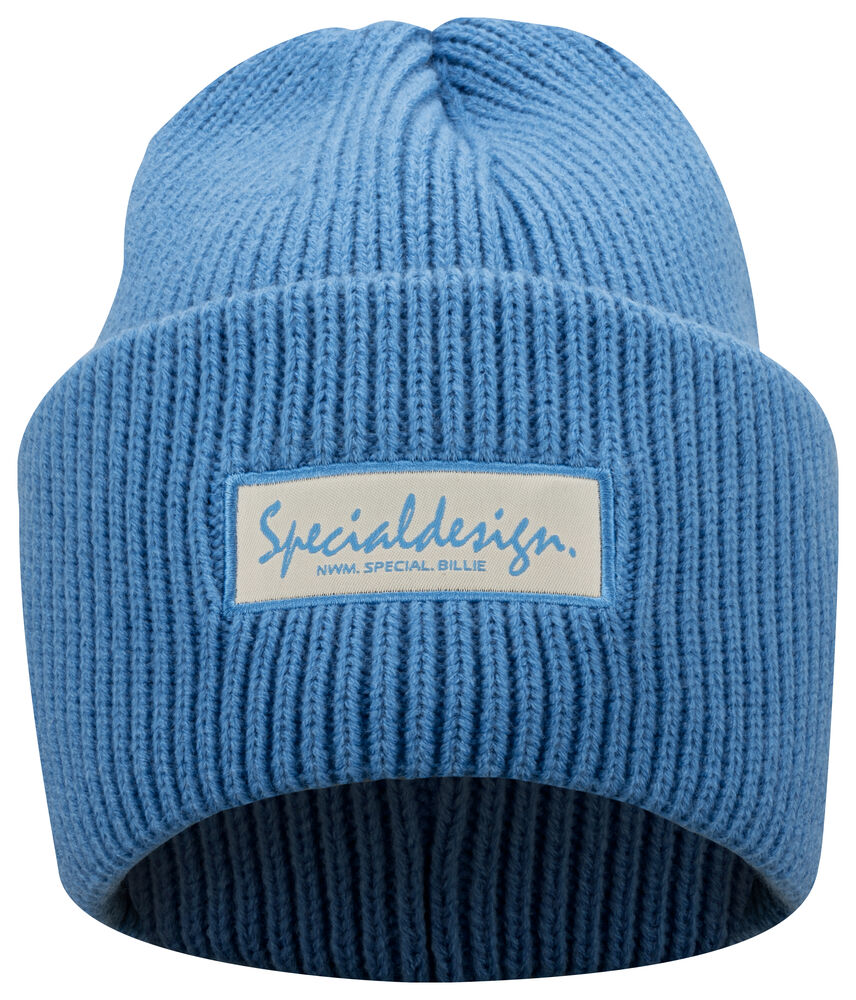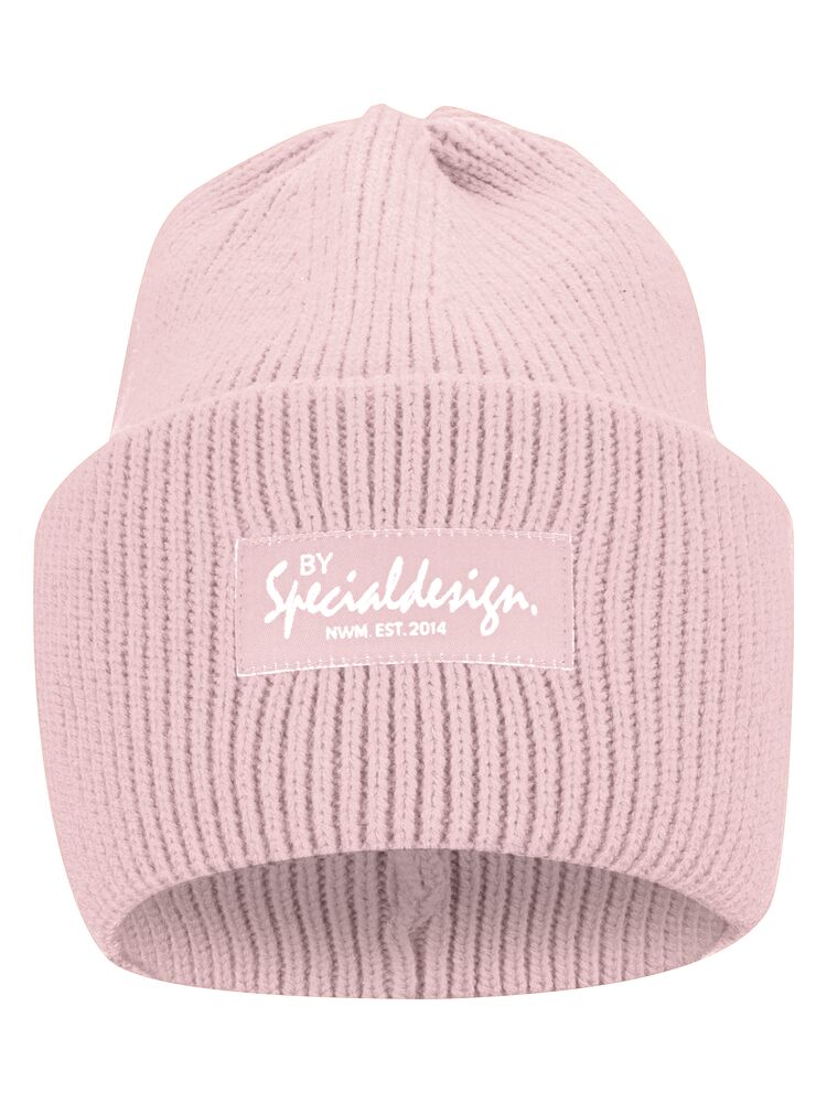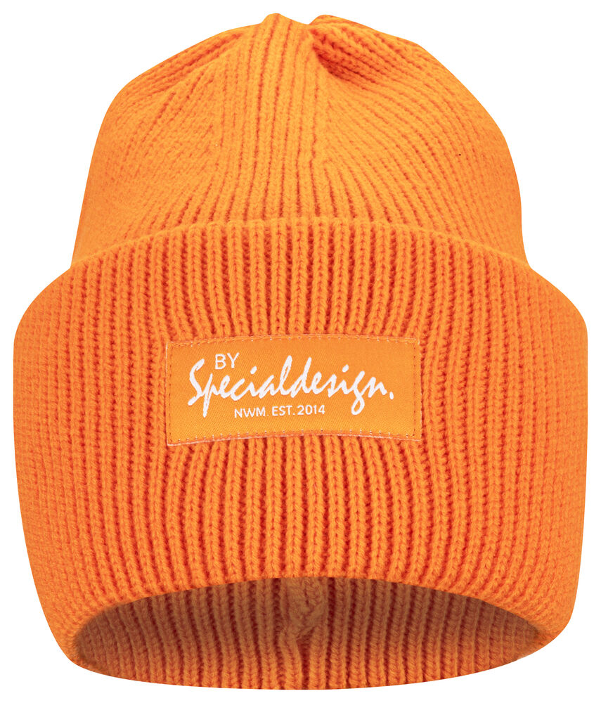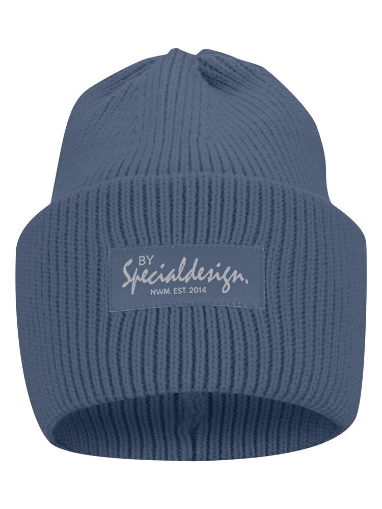 Kraftig, enkelstickad mössa i akryl med smala ribbor. Högt uppvik i dubbelt lager och 4 dekorativa sömmar i toppen. Mått: B25xH23 cm, uppvik: 11cm. Pris inkl. en brodyr* alt. en vävd etikett*.