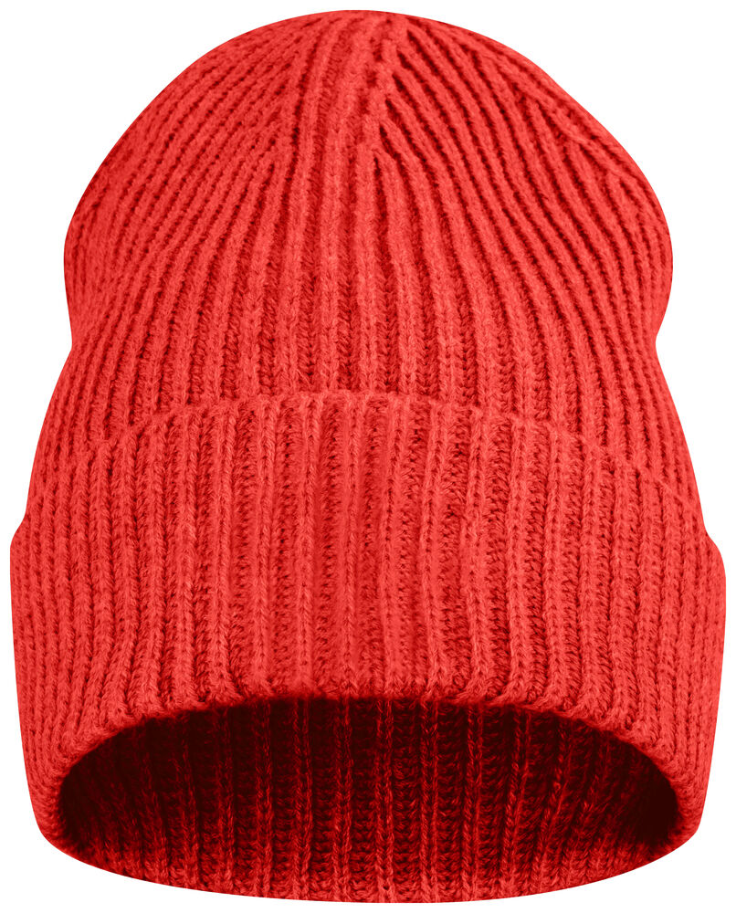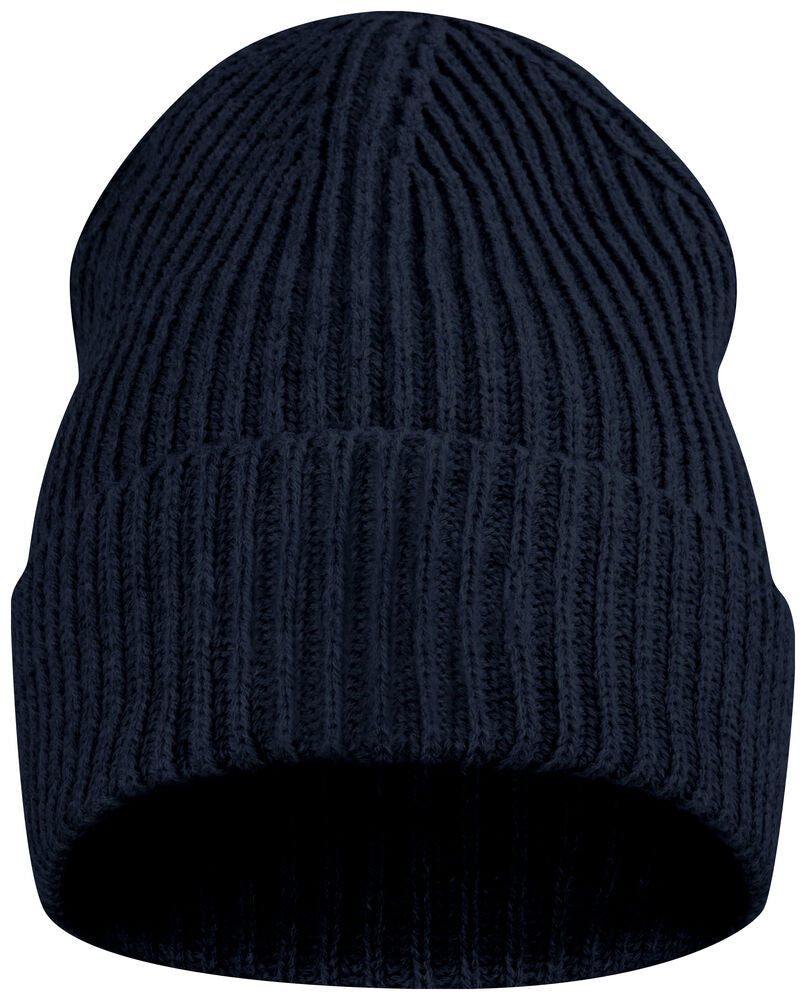 Enkelstickad mössa i akryl med smala ribbor. Uppvik och 4 dekorativa sömmar i toppen. Pris inkl. en brodyr* alt. en vävd etikett*. Mått B24xH24 cm.( * Brodyr upp till 8000 stygn alt. vävd etikett upp till 4 x 4 cm alt. )