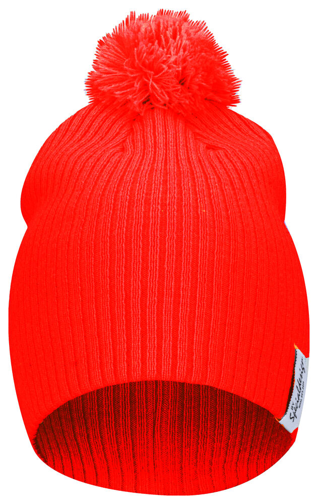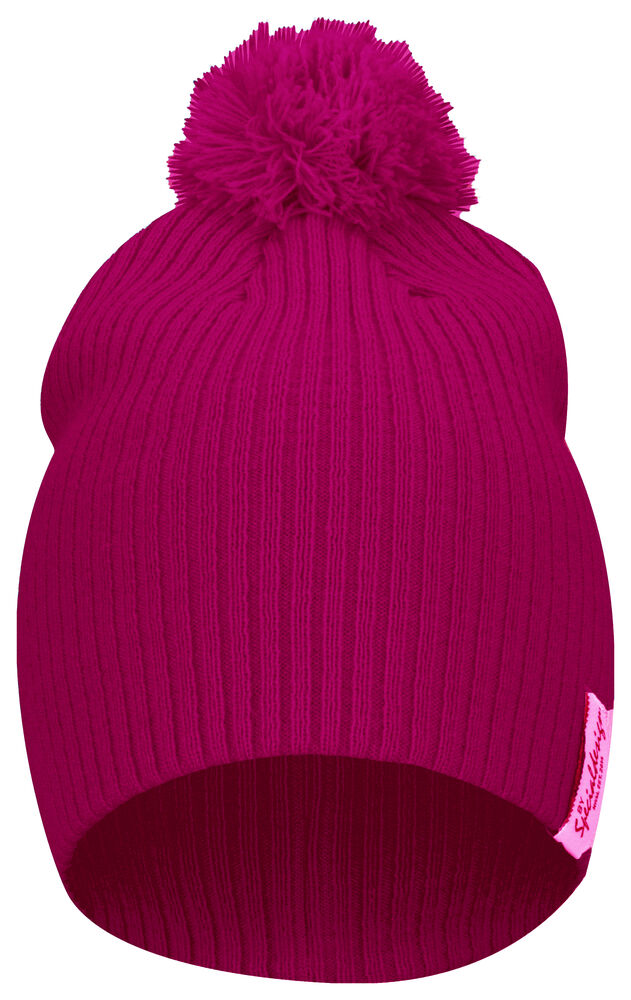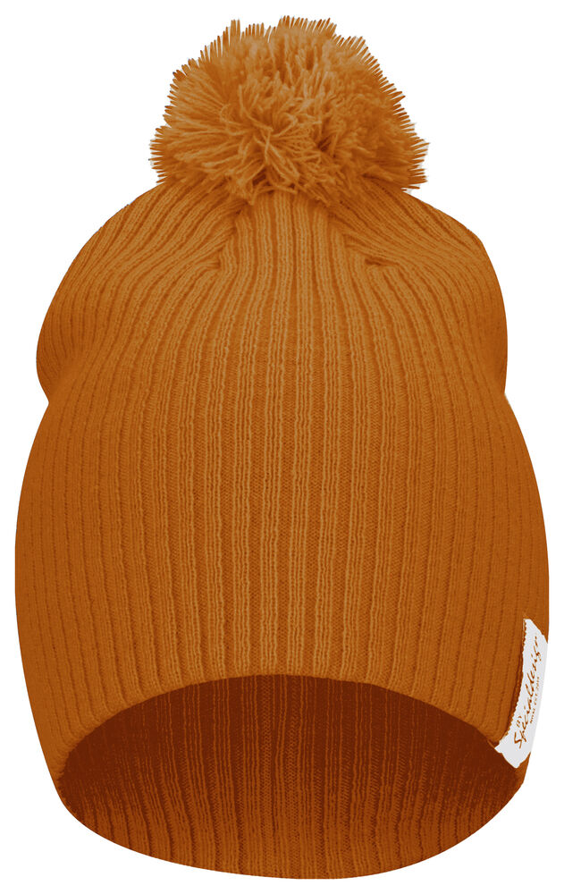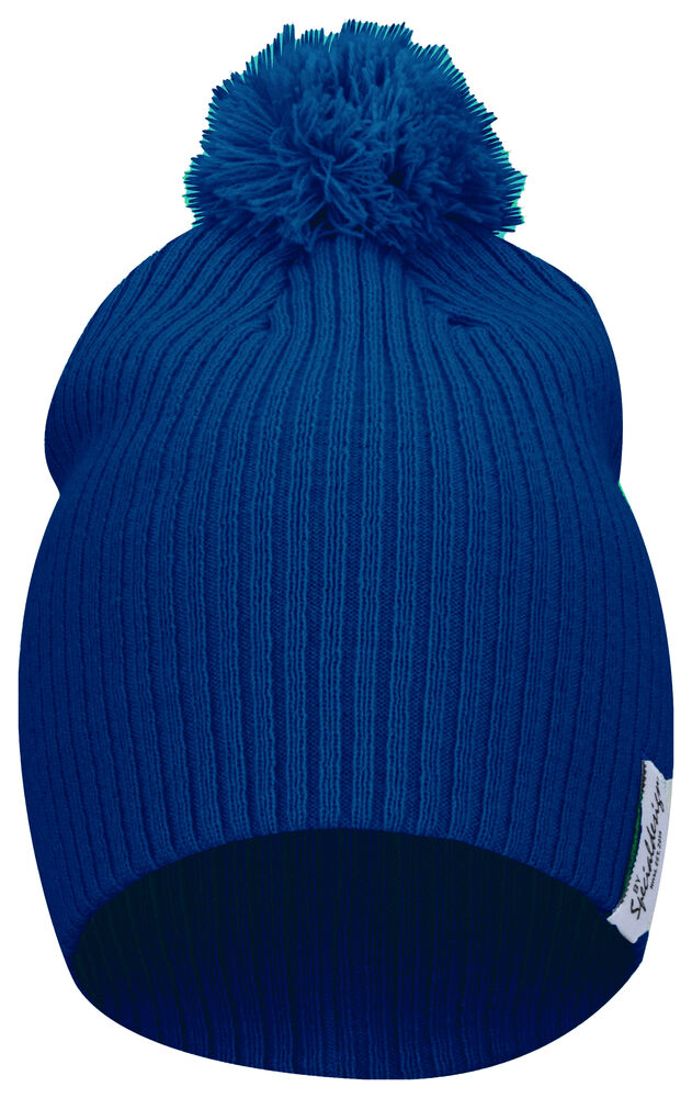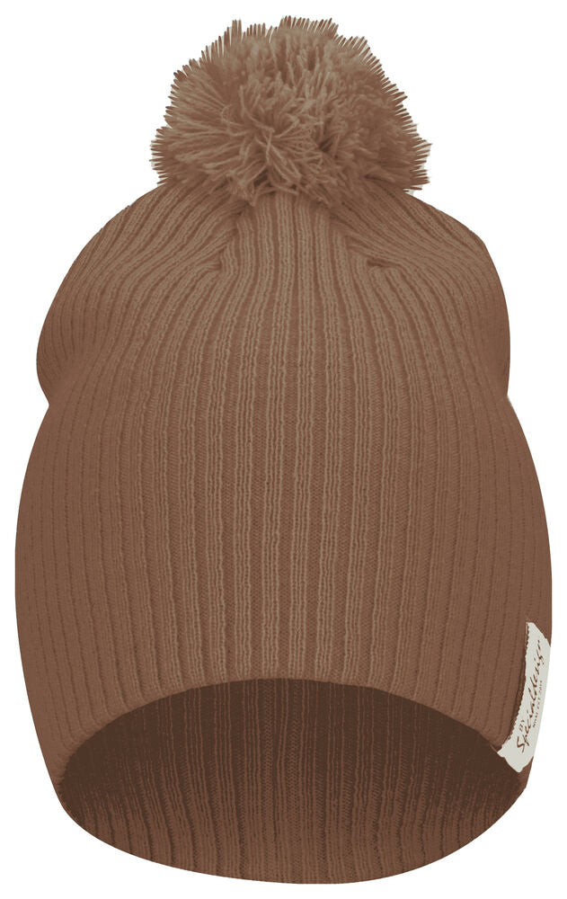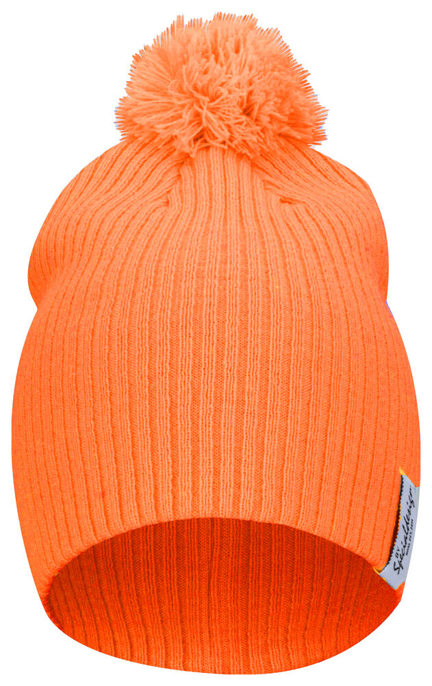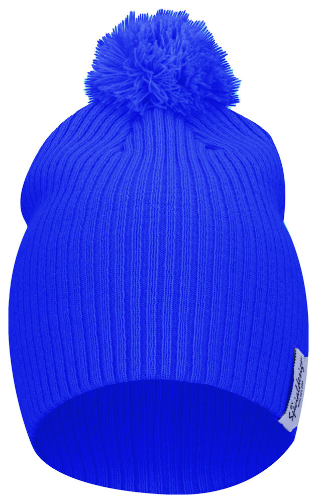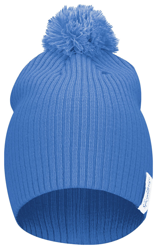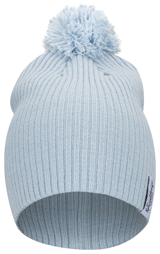 Dubbelstickad mössa i akryl med smala ribbor. Uppvik och 6 sömmar i toppen. Mått B23xH23 cm. Pris inkl. en brodyr* alt. en vävd etikett*.