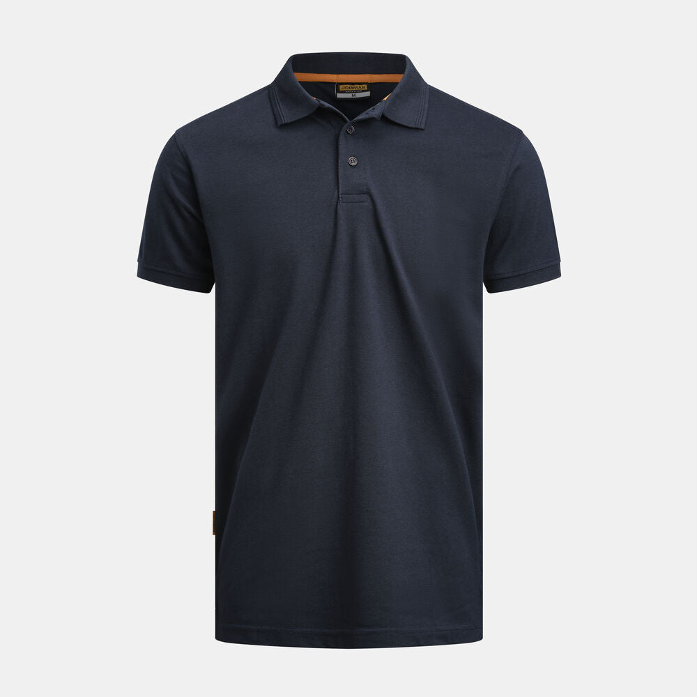 Klassisk pikétröja med knappslå med tre knappar som går ton-i-ton. Sprund i nederkant. Krage och ärmslut i ribb. Dekorativ orange bandkantning på insida krage och sprund.